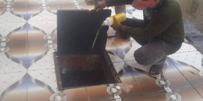 جهود متواصلة لمتابعة أعمال الملاريا للقضاء علي يرقات، البعوض، والحشرات الطائرة، بأماكن متفرقة بالمدينه شملت مناطق المدينة المختلفة بوضع الدواء، من المواد الخام،