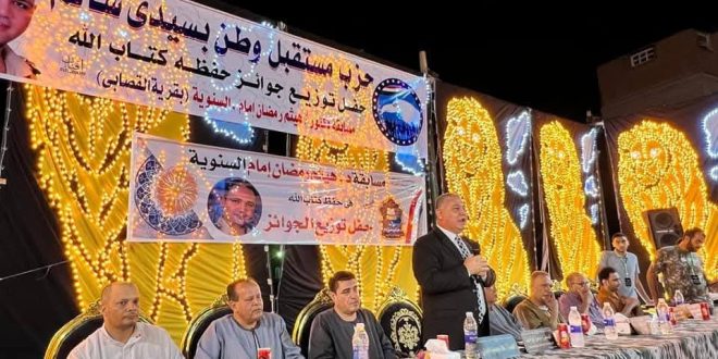 نظمت أمانة حزب مستقبل وطن بمركز سيدي سالم بمحافظة كفر الشيخ احتفالية دينية كبرى لتكريم حفظة كتاب الله، وذلك في ختام مسابقة الدكتور هيثم رمضان إمام، والتي أقيمت بقرية القصابي وسط حضور واسع من القيادات الحزبية والتنفيذية وأهالي القرية.
