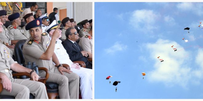 وشهد الحفل مشاركة قوات المظلات باستعراض احترافي باستخدام معدات الدلتا، بجانب تنفيذ قفزات حرة دقيقة، كما قدمت الموسيقات العسكرية عروضًا مبهرة أظهرت التناغم والدقة، واختتمت العروض بالعرض العسكري الذي شارك فيه خريجو الدفعة يتقدمهم حملة الأعلام، لتُعزف بعدها الموسيقى العسكرية “سلام الشهيد” في تقليد راسخ يخلّد ذكرى شهداء الوطن. وتم تكريم أسرة الشهيد محمد محمود مصطفى حربي، عرفانًا بتضحياته الخالدة.