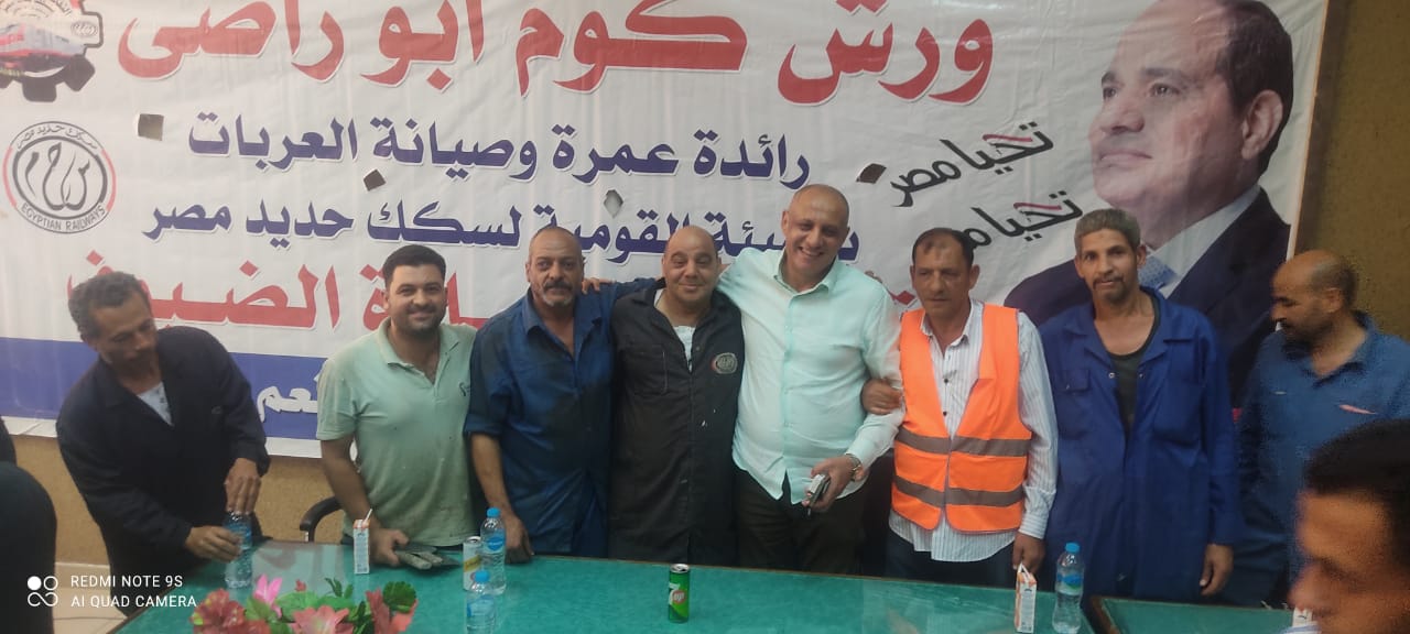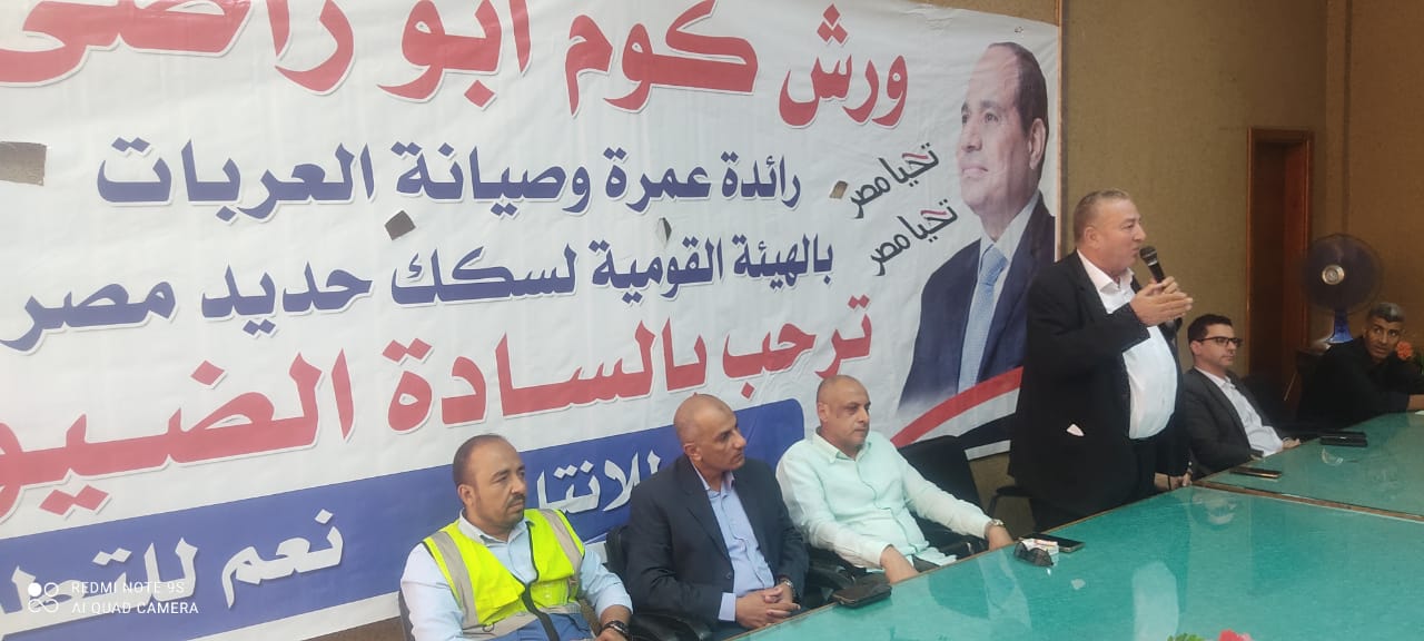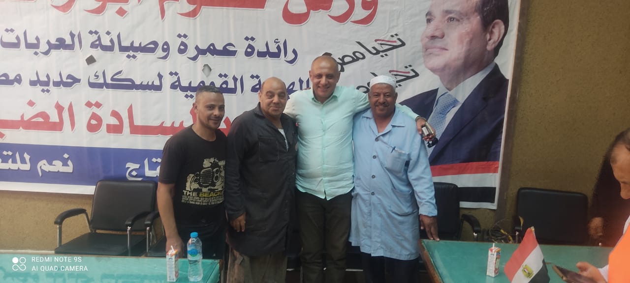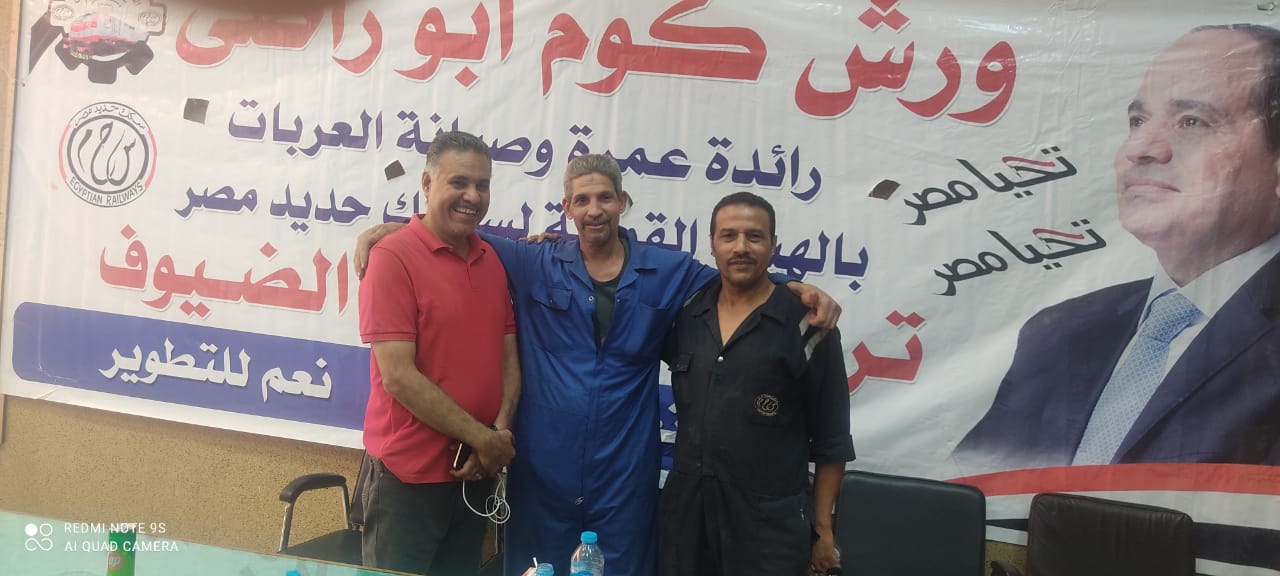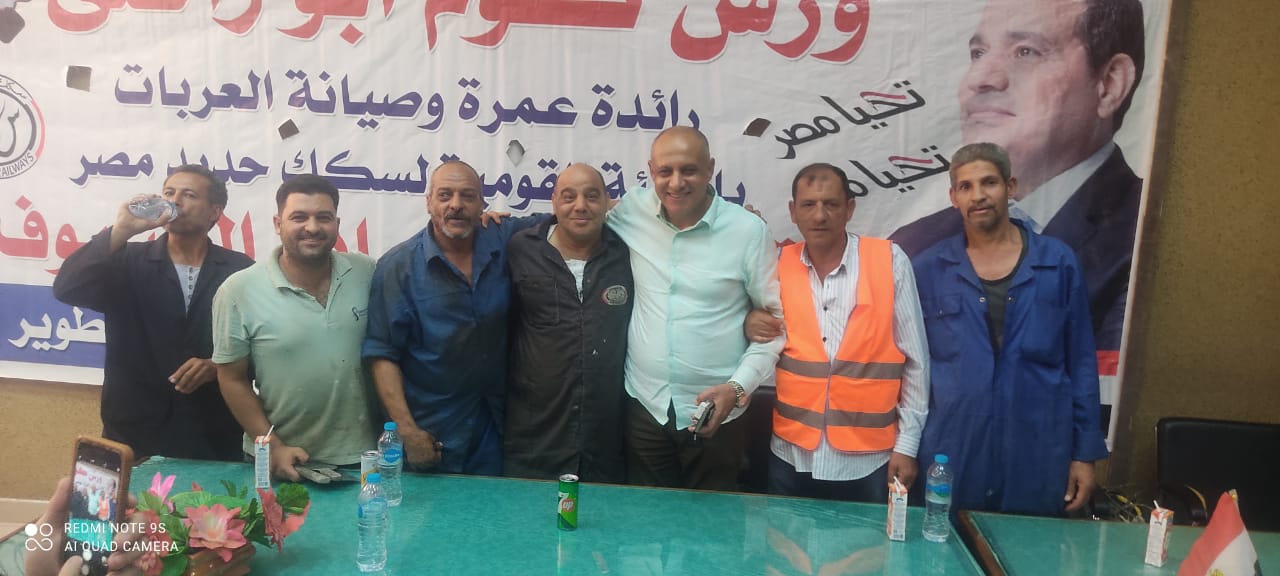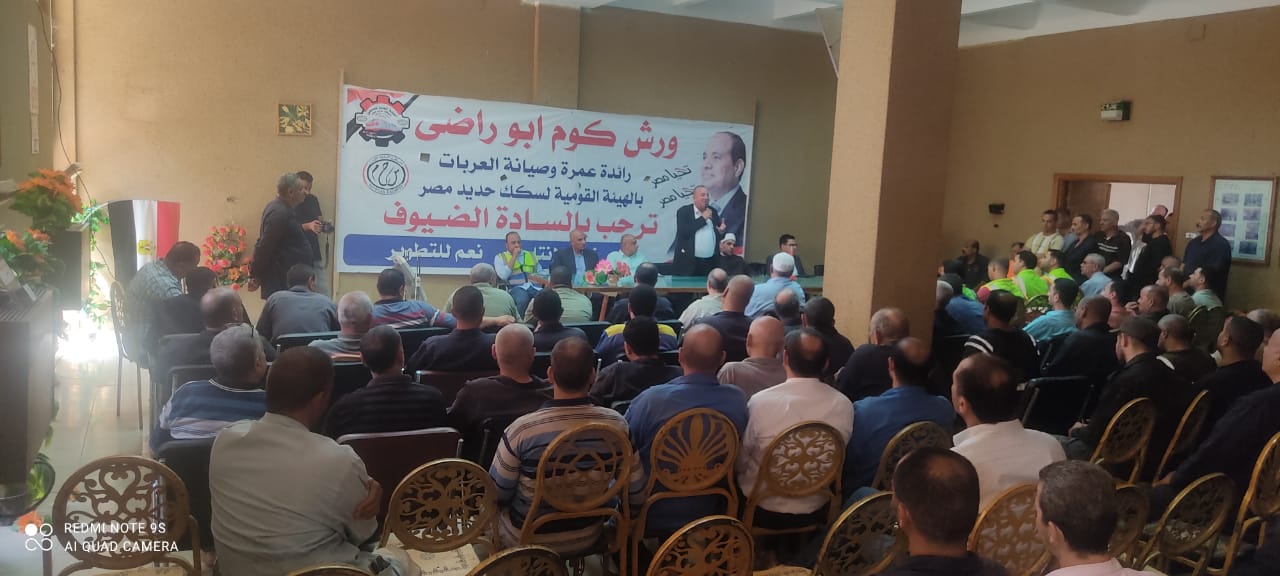 نظمت النقابة العامة للعاملين بسكك حديد مصر ومترو الأنفاق برئاسة عبد الفتاح فكري مؤتمرا عماليا حاشدا بورش قلعة الصناعة كوم أبو راضي بالتنسيق مع الإدارة المركزية لشئون الرئاسة بقيادة العميد علاء سماحة .