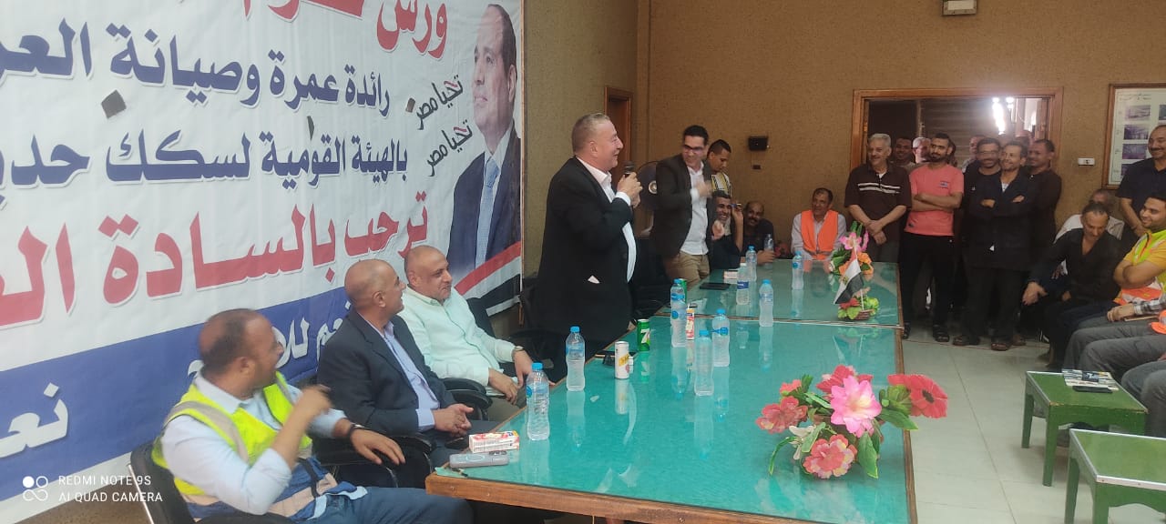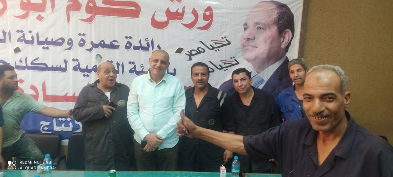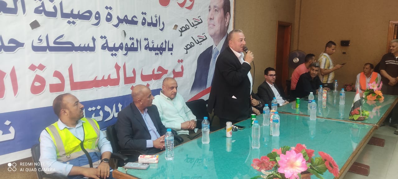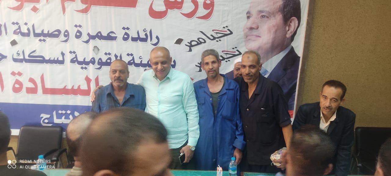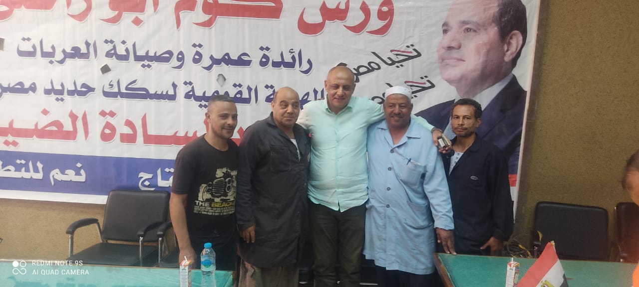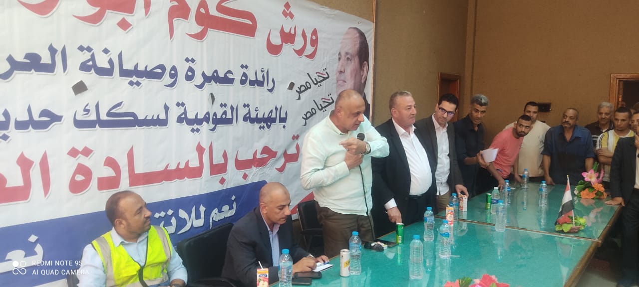 نظمت النقابة العامة للعاملين بسكك حديد مصر ومترو الأنفاق برئاسة عبد الفتاح فكري مؤتمرا عماليا حاشدا بورش قلعة الصناعة كوم أبو راضي بالتنسيق مع الإدارة المركزية لشئون الرئاسة بقيادة العميد علاء سماحة .