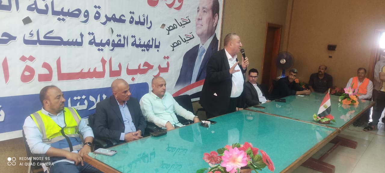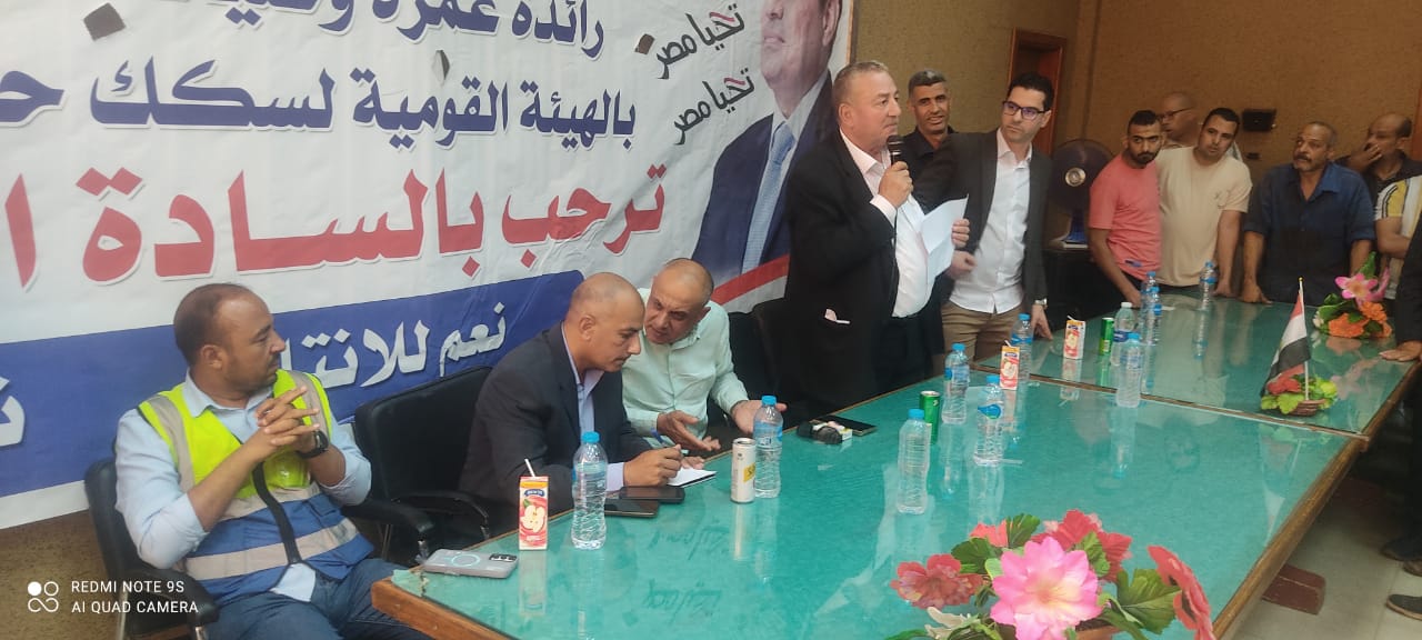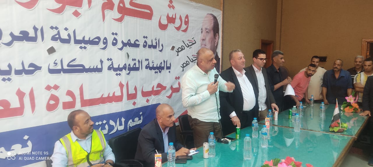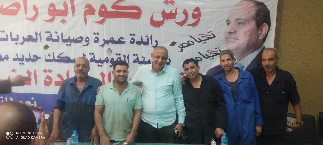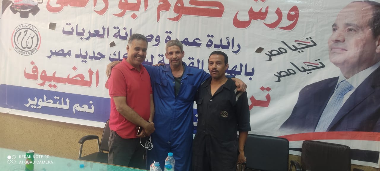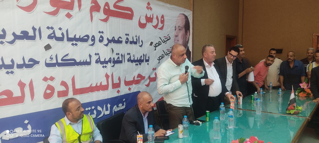 نظمت النقابة العامة للعاملين بسكك حديد مصر ومترو الأنفاق برئاسة عبد الفتاح فكري مؤتمرا عماليا حاشدا بورش قلعة الصناعة كوم أبو راضي بالتنسيق مع الإدارة المركزية لشئون الرئاسة بقيادة العميد علاء سماحة .