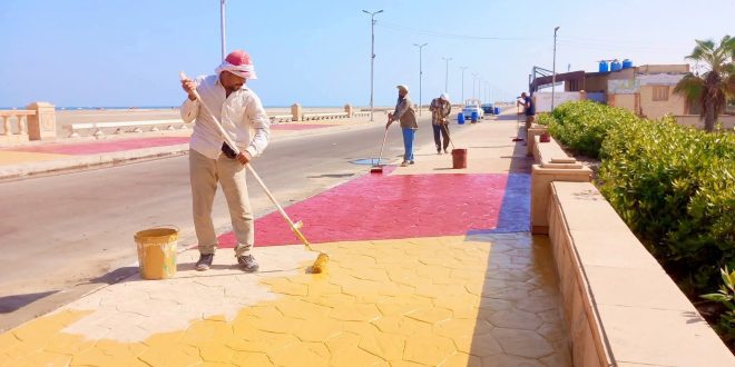 متابعة اعمال صيانة وتجديد دهانات الخرسانة المطبوعة بالمدينة بطول كورنيش شواطيء المدينة المطلة علي شواطيء البحر وذلك للحفاظ على المظهر الجمالي والحضاري للمدينة.